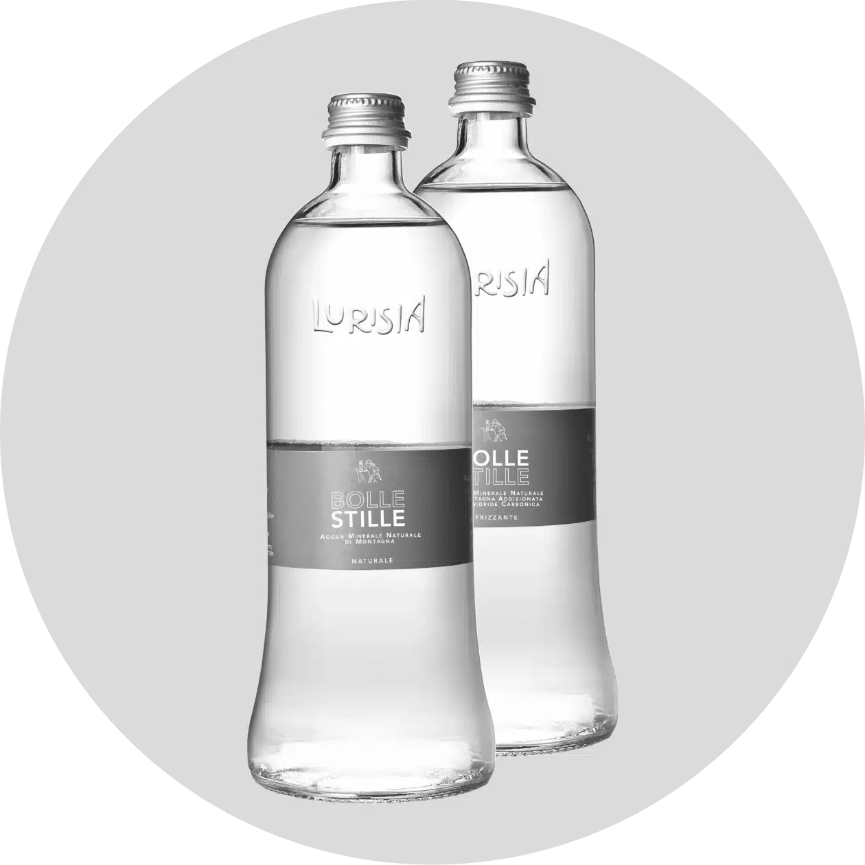 Le bottiglie Lurisia Bolle e Stille sono più che semplici bevande: sono un complemento di design. Con le loro forme pure e iconiche, si integrano perfettamente nell’arredamento di alta gamma, rafforzando la narrazione estetica del tuo prodotto. Servire Lurisia è un gesto di ospitalità elevata che riflette l’eccellenza e l’attenzione al dettaglio del tuo brand.